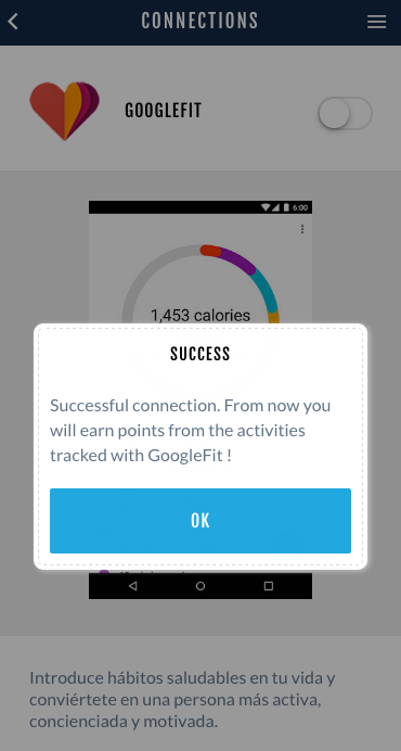 4. Finalmente, pulsa el botón "Conectar" para sincronizar la actividad registrada por la app con el sistema de puntos de WeFitter. Se abrirá una ventana en la que tendrás que introducir tus datos de acceso a la app. Si todavía no te has registrado, ¡este es el momento! Elige un correo y una contraseña y WeFitter comenzará la sincronización.